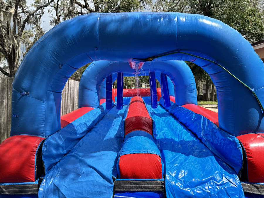 Rent our Dual Lane Slip and Slide for your next event in Oviedo, Winter Springs, Chuluota, Aloma, Sanford, Casselberry, Osteen, Geneva, Bithlo, East Orlando, Orlando, Downtown Orlando, Winter Park, Winter Garden, Ocoee, Hunters Creek, and Lake Nona. 🌴