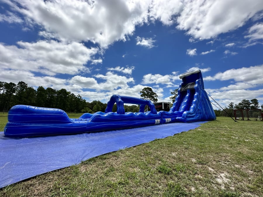 Are you ready to take your party to the next level? Look no further than Blue Crush, the massive 25-foot high and 60-foot long waterslide that will leave your guests in awe. This epic inflatable slide is a surefire way to make a splash at any event, whether it's a graduation party, block party, community gathering, church event, summer camp, school function, sports team celebration, or even a birthday bash or family reunion.
