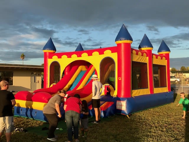 Welcome to Seminole Slides and Such, your premier destination for the Mega Castle Dual Slide Bounce Combo! 🏰🎉 If you're looking for the biggest bounce house combo in central Florida, you've come to the right place. This massive inflatable is equivalent to four regular bounce houses combined, making it perfect for large events and gatherings of all kinds.