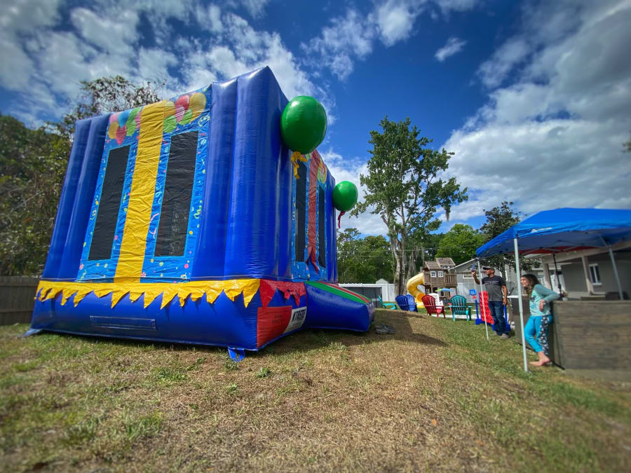 HAPPY BIRTHDAY TO YOU...! The perfect bouncer for any birthday event. Celebrate with a Birthday themed bounce house, perfect for any age! This Birthday bouncer features a tension entrance, knotless netted windows and a high resolution bithday themed art panel! Measurements 15x15x15
