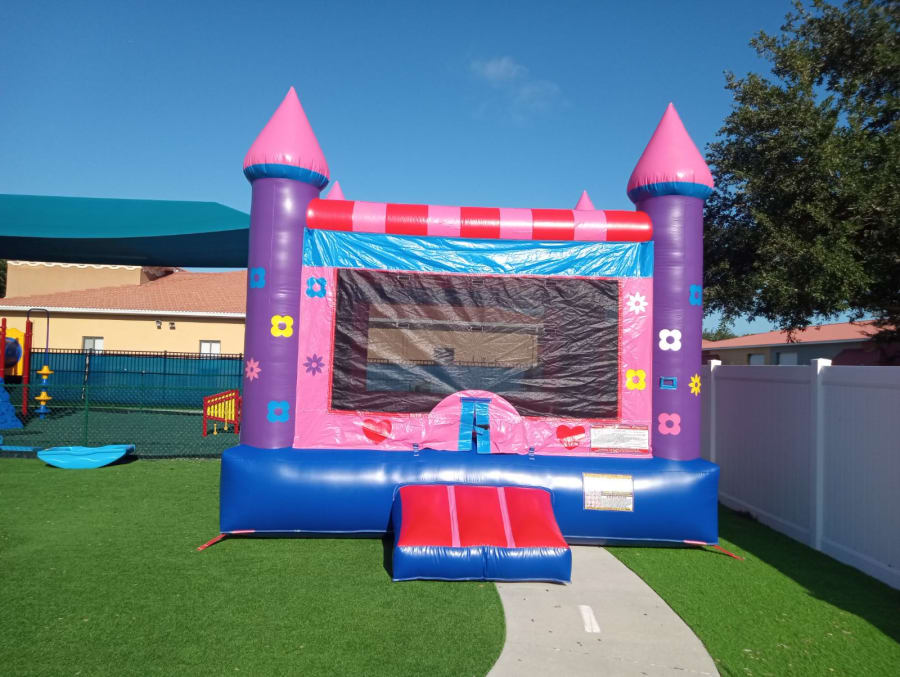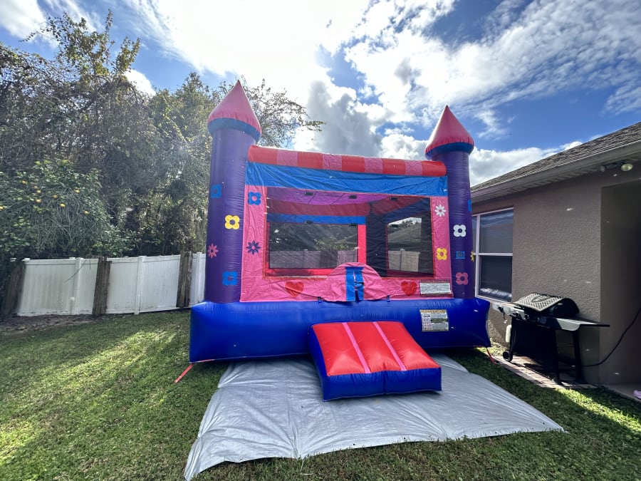 Invite the Flower Bounce House to your next party or special event for fantastic, safe, bouncing fun! This unit features a safety step, knotless netted windows, tension entrance and many other state-of-the-art features that keep the kids safe while giving parents peace of mind. Delivered clean and on time every time.