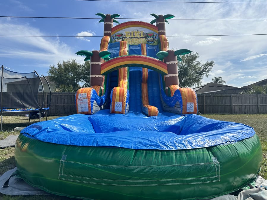 Experience the thrill of our brand new 24-foot Tiki Plunge waterslide, perfect for parties, events, and summer fun in Chuluota, Oviedo, Sanford, Winter Park, and more! 🎉🌞
