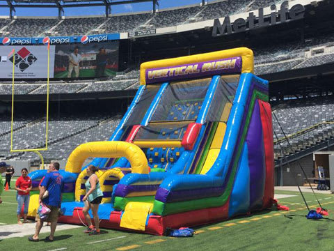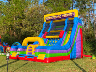 Don't miss out on the biggest and most thrilling inflatable obstacle course slide in town. Book the Vertical Rush Dual Slide today and get ready to race, slide, and have a blast!