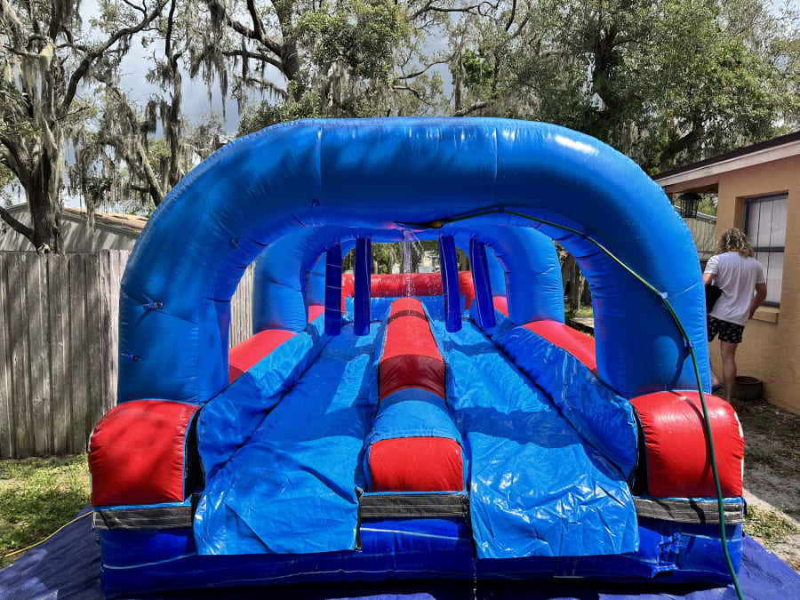 Rent our Dual Lane Slip and Slide for your next event in Oviedo, Winter Springs, Chuluota, Aloma, Sanford, Casselberry, Osteen, Geneva, Bithlo, East Orlando, Orlando, Downtown Orlando, Winter Park, Winter Garden, Ocoee, Hunters Creek, and Lake Nona. 🌴