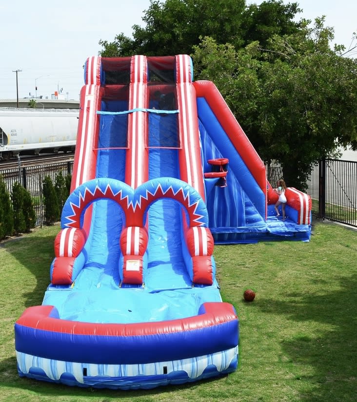 But that's not all! Our Dual Patrioteer Waterslide also comes with a built-in basketball hoop, adding an extra element of fun for everyone to enjoy. Whether you're hosting a birthday party, family gathering, or community event, the Dual Patrioteer is sure to be a hit with guests of all ages. πŸ€